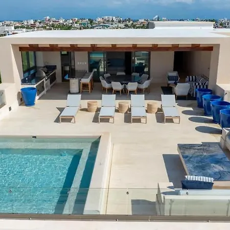 Offering a rooftop pool, the spacious 9Br Luxury Beachfront Penthouse W/ Private Pool Isla Mujeres apartment is situated a 7-minute walk from the Hacienda Mundaca. Staying in this apartment, nestled just moments from the Shark Beach, guests can relax on a patio.